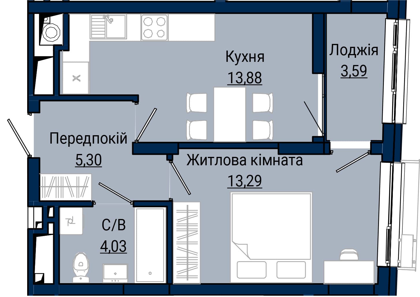 1-кімнатна, №13