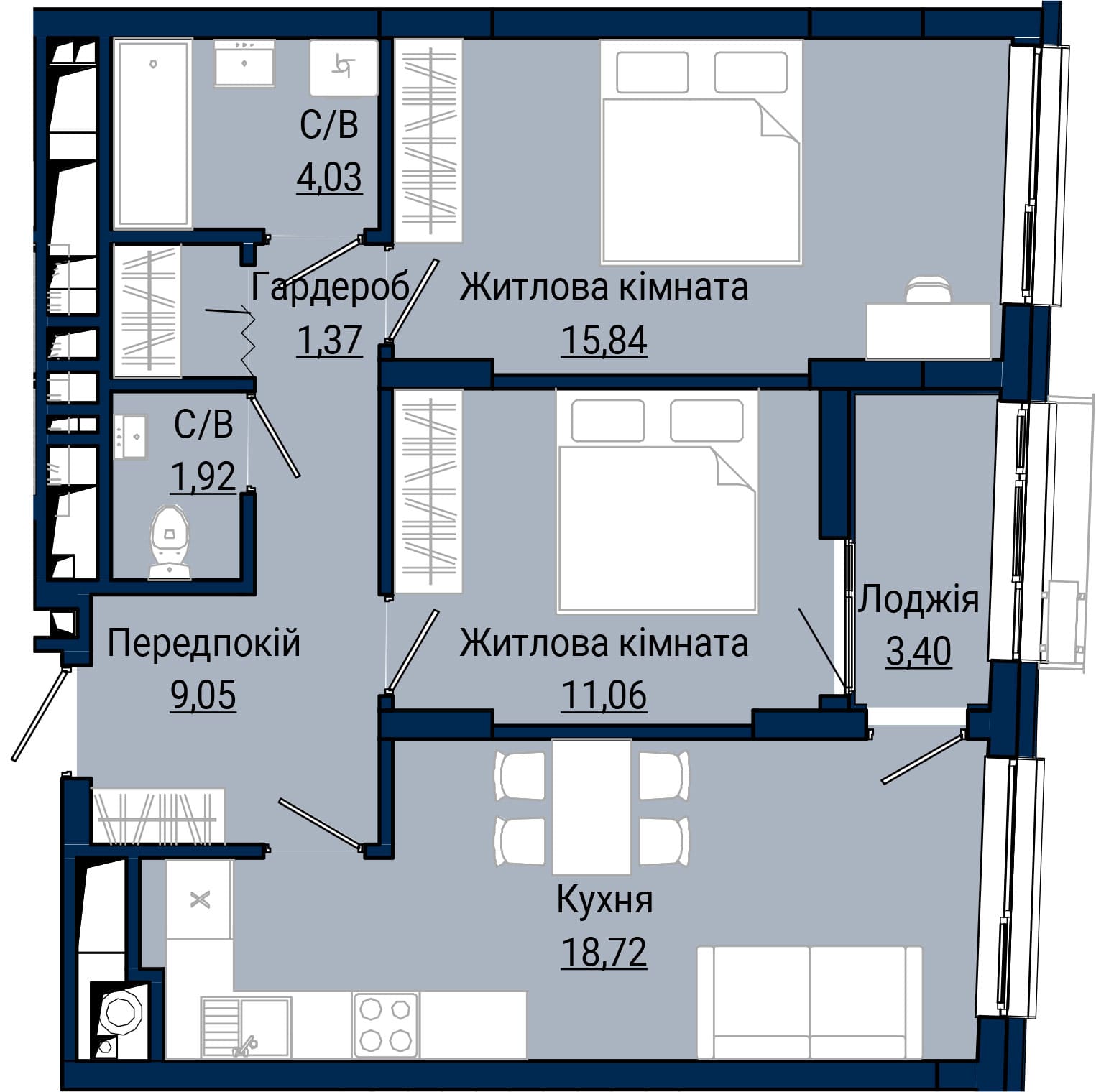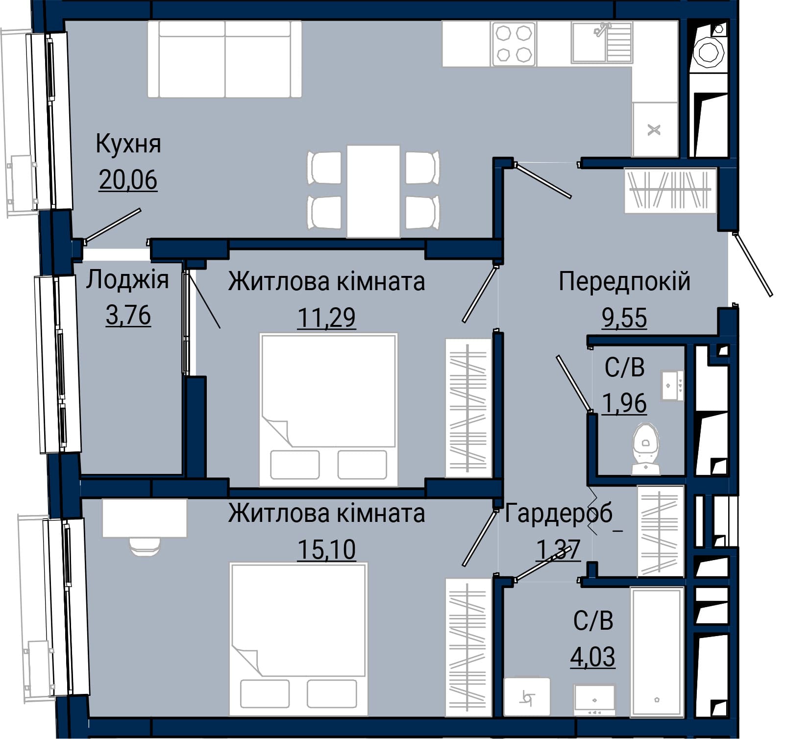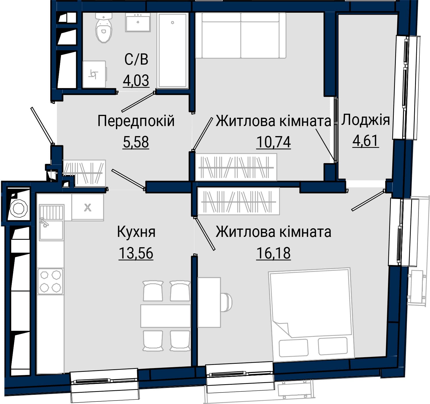 2-кімнатна, №19