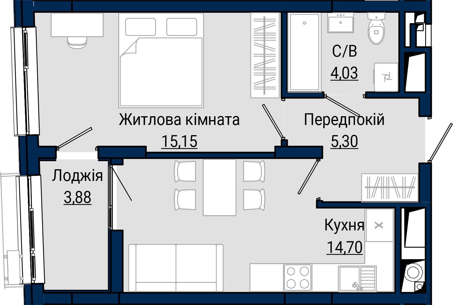 2-кімнатна, №15