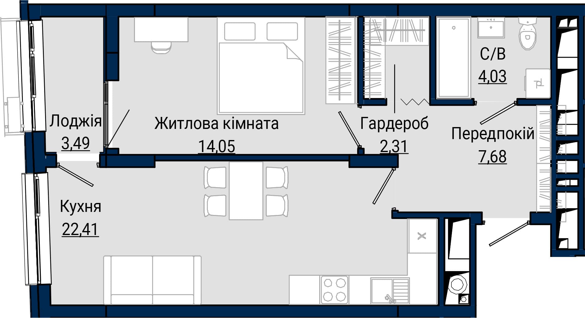 2-кімнатна, №14